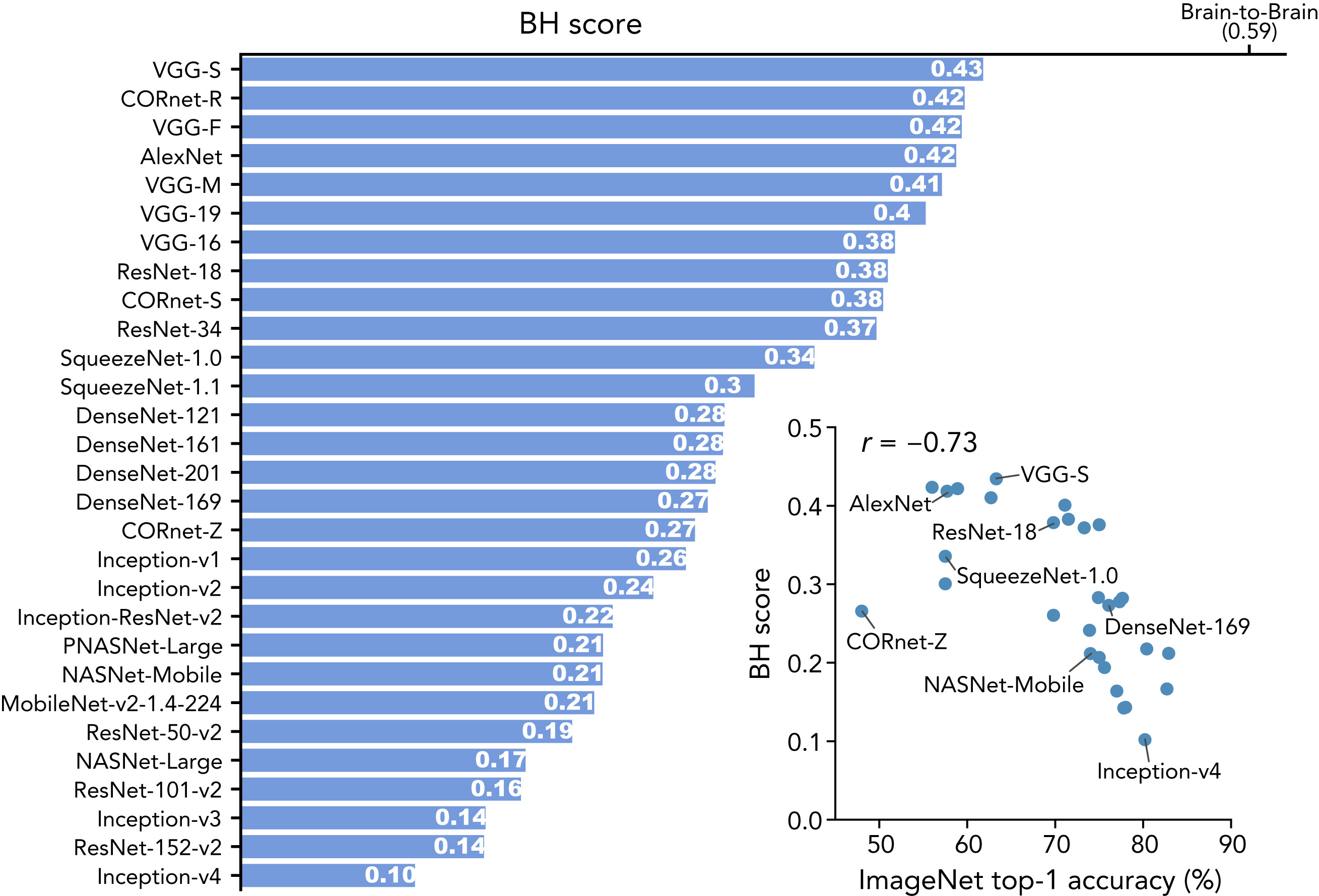 Schrimpf, Martin, Jonas Kubilius, Ha Hong, Najib J Majaj, Rishi Rajalingham, Elias B Issa, Kohitij Kar, et al. 2018. “Brain-Score: Which Artificial Neural Network for Object Recognition Is Most Brain-Like?” BioRxiv, 407007.